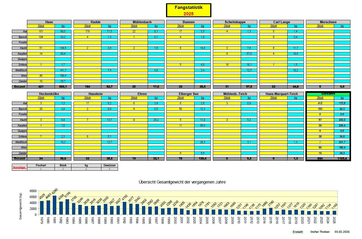 Die Fangmeldungen 2025 wurden ausgewertet und in einer Fangstatistik zusammengefasst. |