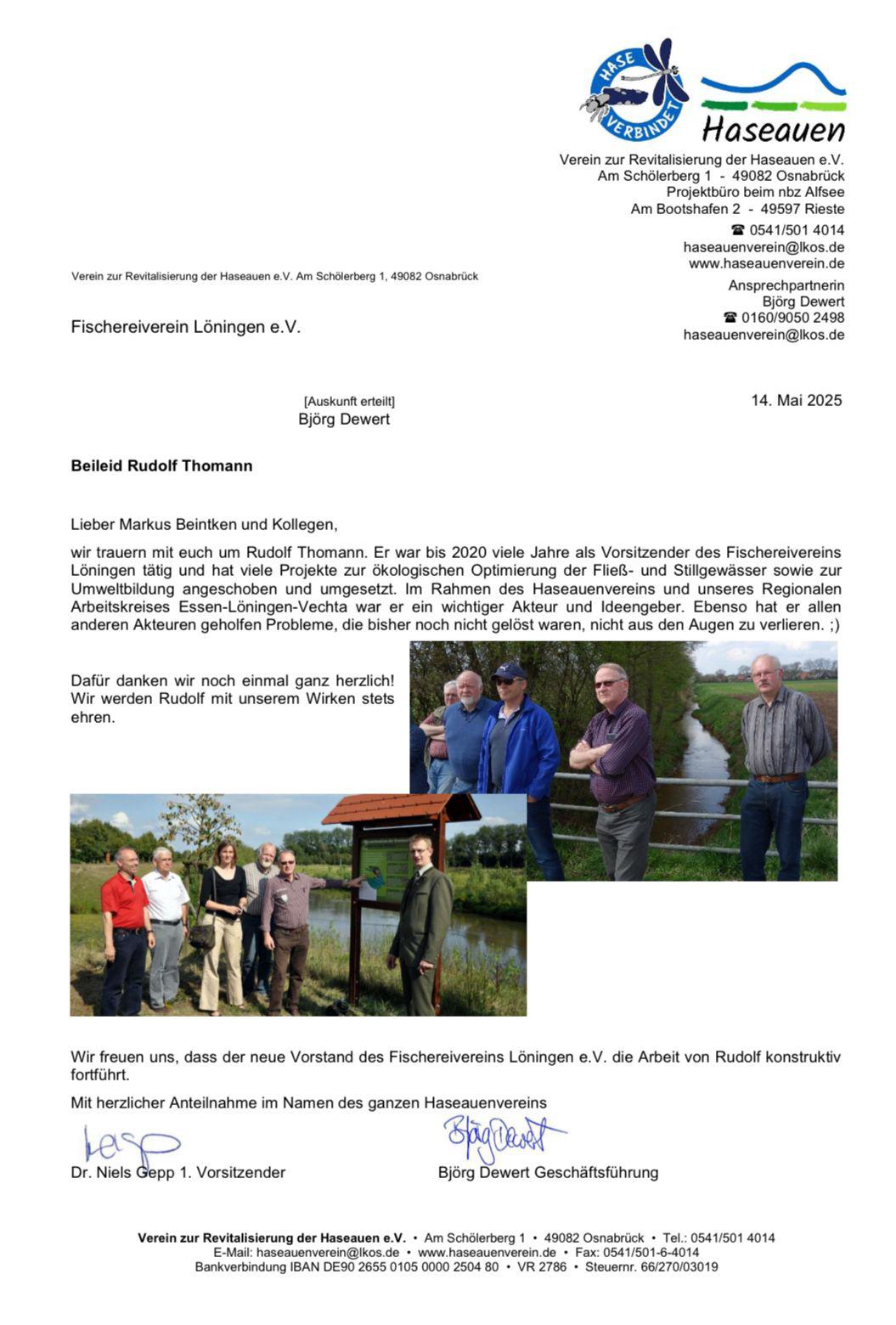 Seine freundliche und bescheidene Wesensart machte ihn zu einem hoch geschätzten Angelkollegen, auf den immer Verlass war.